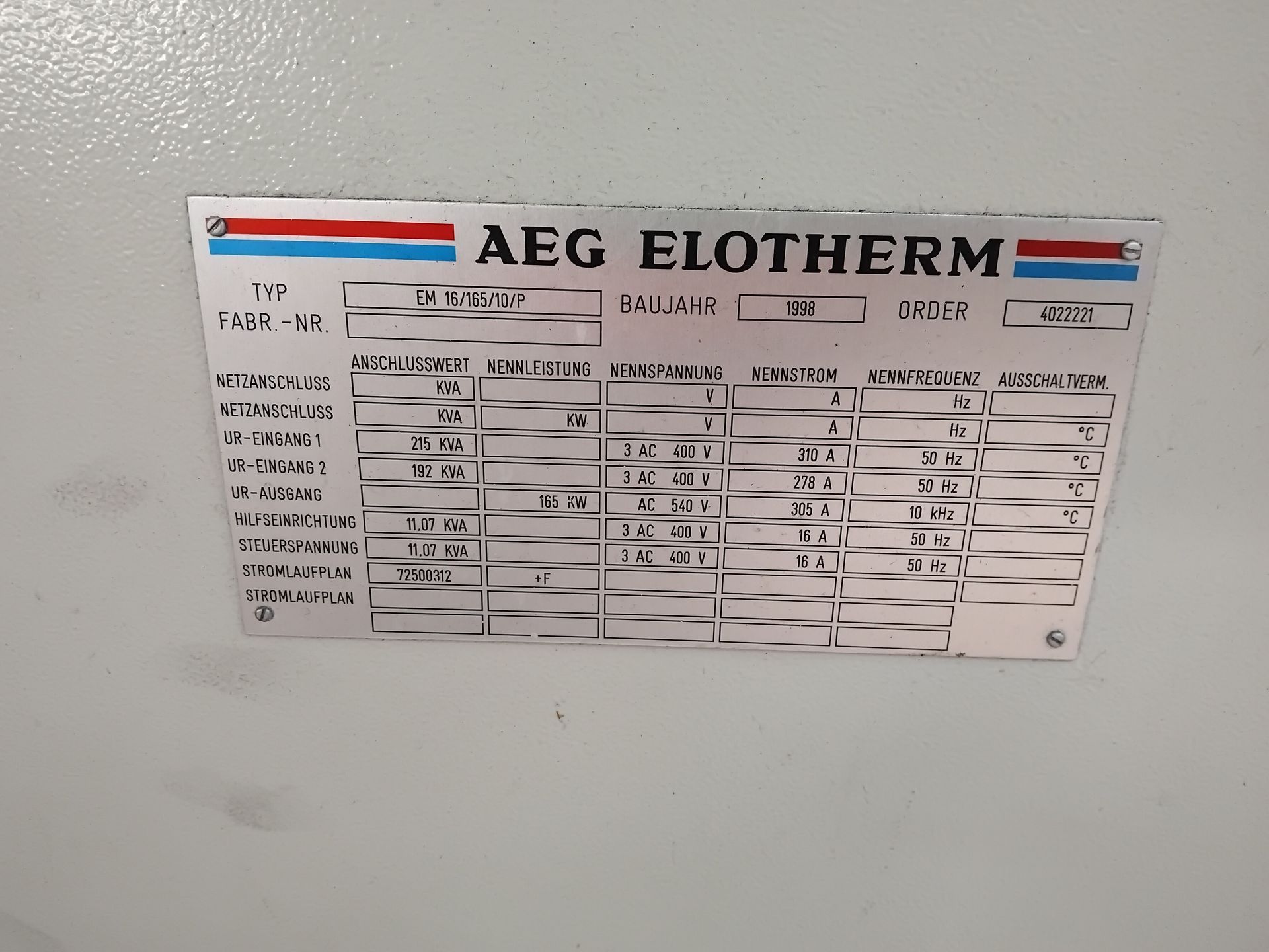 2) N°1 convertitore Elotherm completo di armadio condensatori con potenza massima 165 kW e frequenza di lavoro 10 kHz